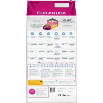 Eukanuba Dog Daily Care Large Weight Control är ett torrfoder för hund som är speciellt framtaget för att hjälpa att hålla en hälsosam vikt. Hundfoder med 30% mindre fett (jämfört med Eukanuba Adult Medium). Fodret innehåller L-karnitin för hälsosam viktkontroll. Prebiotika och betmassa för att bidra till att stödja en hälsosam matsmältning. Innehåller även kalcium och glukosamin, samt naturliga källor till omega 6 och omega 3 för hundens hud och päls. Passar för hund av stor ras och över 25 kg. Från 18 månader till 6 års ålder, eller 2 till 5 år för mycket stora hundraser över 40 kg. 15 kg.