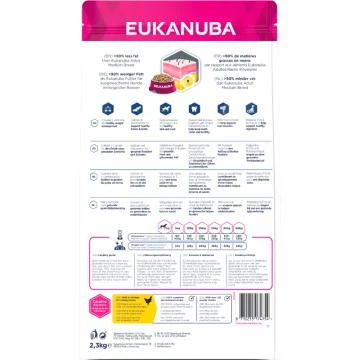 Eukanuba Dog Daily Care Overweight är ett torrfoder för överviktig och kastrerad hund. Hundfoder med 50% mindre fett (jämfört med Eukanuba Adult Medium). Fodret innehåller L-karnitin för hälsosam viktkontroll , prebiotika och betmassa för att bidra till att stödja en hälsosam matsmältning. Innehåller också kalcium och glukosamin för att stödja skelett och leder, samt naturliga källor till omega 6 och omega 3 för hundens hud och päls. Passar från 1 år och uppåt.