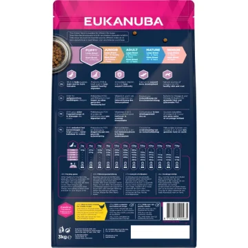 Eukanuba Dog Puppy Large Fresh Chicken är ett torrfoder för valp av stora raser. Foder med utvalda ingredienser som ger skräddarsydd näring för att stödja tillväxt och utveckling hos valp. Rikt på kyckling och innehåller bland annat DHA och fosfor, samt kalcium för att främja optimal tillväxt av leder och ben för växande valpar. Innehåller också prebiotisk FOS och sockerbetsfiber för hälsosam matsmältning. Passar hund av stora raser över 25 kg i vikt. Från 1 till 12 månaders ålder, eller 1 till 14 månader för mycket stora hundraser. 3 kg.
