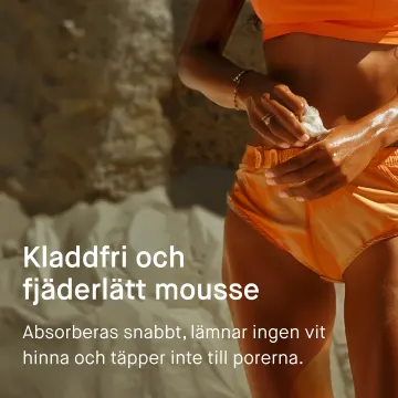 - Lätt solskyddsmousse som absorberas mycket snabbt, kladdar inte och är inte fet