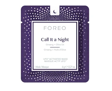 FOREO Call It a Night UFO™-mask är avsedd att användas tillsammans med FOREO UFO. Call It a Night UFO mask är en uppfriskande ansiktsmask som stärker och återfuktar huden. Den är speciellt framtagen för torr, uttorkad och trött hud med en unik kombination av olivolja, ginseng och antioxidantrik hagtorn. Genom att förena de mjukgörande egenskaperna hos olivolja med ginsengs föryngrande kraft återfuktar och återställer masken huden på djupet. Dermatologiskt testad. Varje förpackning innehåller 7 masker.