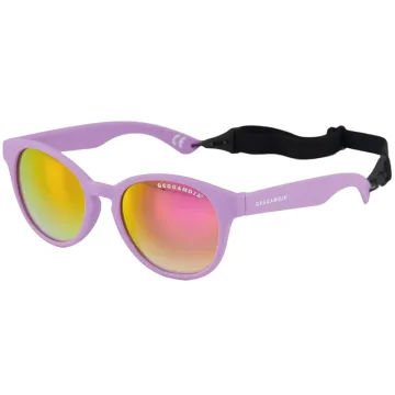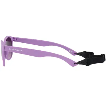 Geggamoja Solglasögon Barn 2-6 år Lila är mjuka och följsamma solglasögon i snygg design. Med en praktisk resårsnodd som enkelt sätts kring huvudet för att solglasögonen ska sitta på plats. Snodden kan tas av och justeras i storlek med hjälp av spännerna längst ut på skalmarna. Tillverkade i mjuk silikon som är ett både bekvämt och tåligt material. CE-märkta med UV 400 som blockerar alla skadliga UVA- och UVB-strålar och mörka glas i filterkategori 3. Bredd 13 cm, passar barn 2–6 år.