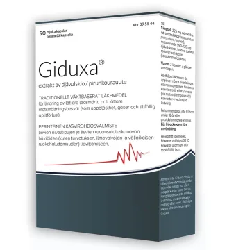 Giduxa är ett traditionellt växtbaserat läkemedel som lindrar mild långvarig ledvärk, ökar rörlighet och reducerar därmed stelhet. Innehåller extrakt av djävulsklorot (Harpagophytum procumben DC). Tas dagligen. För vuxna över 18 år.