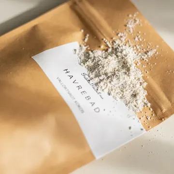 Gröna Gredelina Havrebad är ett så kallat mjölkbad som fungerar på samma sätt som ett badsalt. Man lägger det i badet och vattnet förvandlas till ett vitt mjölkbad. Kollagenbadet innehåller finmalt havre, kokosmjöl och vallörtsrot. Ingredienserna sägs göra det lättare för huden att bilda kollagen. 450 ml.