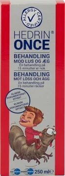 Hedrin® Once gnuggas in i torrt hår, ända ner i hårbotten. Låt det verka i 15 minuter. Låt håret lufttorka (får ej fönas). Kamma inte håret medan behandlingen verkar. Direkt efter behandlingen ska man använda schampo. Det är viktigt, att schampot appliceras före vattnet, annars kan det vara svårt att skölja Hedrin® Once ur håret.