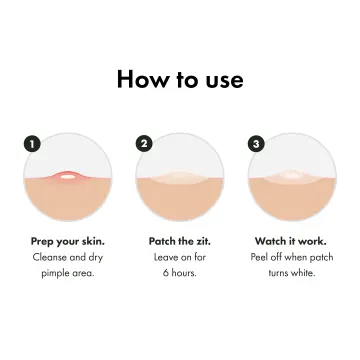 1. Förbered huden. Rengör området runt finnen och torka torrt. 2. Sätt på plåstret och låt det sitta på i 6–8 timmar. 3. Se att det fungerar. Dra av när plåstret har blivit vitt.