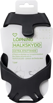 Hjärtats Halkskydd Löpning har en extra åtsittande passform på skon, anpassad för löpning och snabba promenader. De effektiva dubbarna under fotblad och häl ger ett bra fäste på snö och is. Passar de flesta skor men kräver lite mer handkraft vid av- och påtagning. Endast för utomhusbruk. Hjärtats Halkskydd Löpning S/M 1par passar stl 36 - 39 Hjärtats Halkskydd Löpning M/L 1par passar stl 40- 43 Hjärtats Halkskydd Löpning XL 1par passar stl 44 – 46