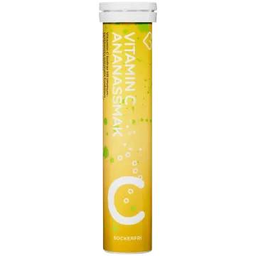 Hjärtats Vitamin C Ananas är en brustablett med C-vitamintillskott med god smak av ananas. Kosttillskott med vitamin C som bidrar till immunsystemets normala funktion. Sockerfri. Innehåller sötningsmedel. 20 brustabletter.