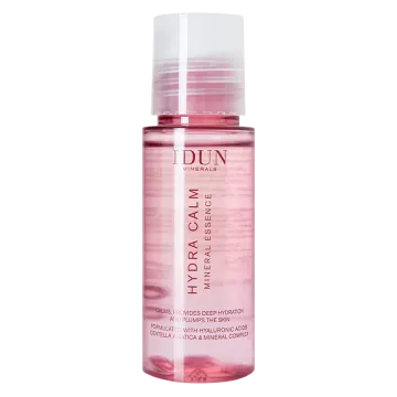IDUN Minerals Hydra Calm Mineral Essence är en intensivt återfuktande essence som är en kombination av ansiktsvatten och serum. Essencen används efter rengöring och återfuktar huden med ett långvarigt resultat. Berikad med två olika hyaluronsyror som återfuktar både djupt ned i huden och högre upp, vilket absorberar och kapslar in fukt samtidigt som huden får ett fylligt intryck. Innehåller även centella asiatica som lugnar huden och ett mineralkomplex med magnesiumaspartat, zinkglukonat och kopparglukonat som tillför essentiella mineraler. Dernatologiskt testad och oparfymerad. Vegansk. 50 ml.