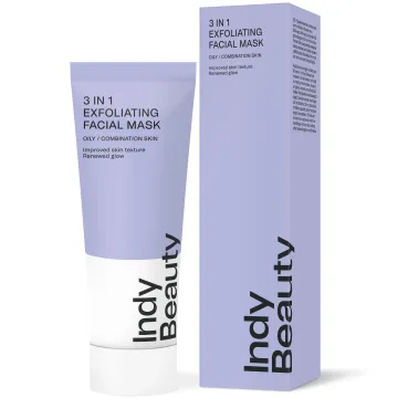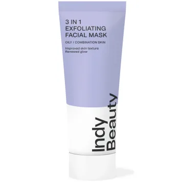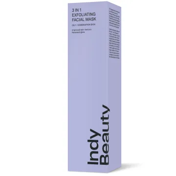 Indy Beauty 3in1 Exfoliating Facial Mask är en trippelverkande exfolierande ansiktsmask som gör huden len med lyster. Masken exfolierar och avlägsnar döda hudceller. Innehåller BHA, AHA samt enzymer från granatäpple och exfolierande korn från silica. Oparfymerad. Vegansk. 75 ml.