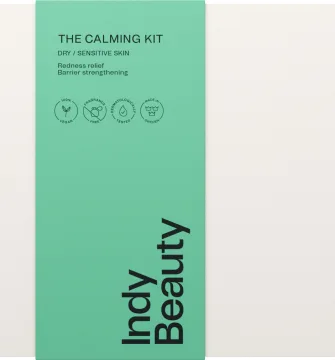 Indy Beauty Calming Kit är ett komplett set med hudvård anpassad för känslig eller reaktiv hy. Innehåller mild rengöring, ansiktsvatten och ansiktskräm som vårdar huden och hjälper till att lindra irritation. Innehåller även en matchande hårsnodd som håller håret borta från ansiktet under hudvårdsrutinen. Förpackningen innehåller Milky Silky Calming Cleansing Lotion, Recover Calm Remedy Balm och Peace Out Calming Toner. Indy Beauty Milky Silky Calming Cleansing Lotion är en rengöringskräm med mjölkig konsistens. Ansiktsrengöringen är berikad med havreolja som lugnar irritation, glycerin som återfuktar, sodium PCA som minskar uppkomsten av fina linjer och hyaluronsyra som verkar fyller ut huden och återfuktar på djupet. Formulan hjälper till att lugna och återfukta huden samtidigt som den skonsamt tar bort smink och orenheter. Huden rengörs effektivt utan att kännas torr eller stram efteråt. Passar känslig, torr och kombinerad hud. Oparfymerad. Vegansk. 150 ml. Indy Beauty Peace Out Calming Toner är ett lugnande och återfuktande ansiktsvatten. Med en mjölkig formula berikad med hampfröolja, havreolja och prebiotika som återfuktar huden och hjälper till att stärka hudbarriären. Innehåller även pantenol, hyaluronsyra och allantoin som hjälper till att förbättra hudens fuktnivåer och ge en lugnande känsla. Passar torr, irriterad och känslig hud. Oparfymerad. Vegansk. 150 ml. Indy Beauty Recover Calm Remedy Balm är en lugnande ansiktskräm med en fyllig formula som hjälper till att lindra rodnad. Berikad med prebiotika, mandelolja, squalane och bisabolol som hjälper till att återfukta och stärka torr, irriterad och känslig hy. Innehåller även ett komplex av sju olika lugnande och barriärstärkande botaniska extrakt som bidrar till att reparera huden och minska irritation. Nominerad i Swedish Beauty Awards 2024. 50ml.