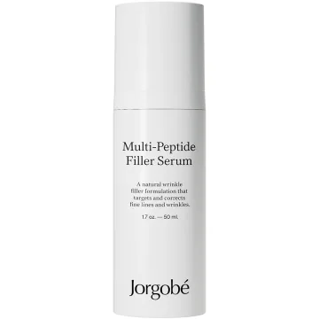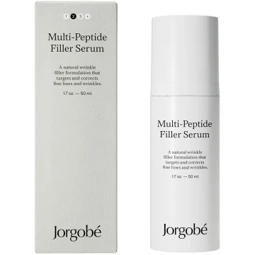 Jorgobé Multi-Peptide Filler Serum är ett serum med peptider som motverkar rynkor. Serumet innehåller två avancerade peptider, Matrixyl® som stimulerar kollagensyntesen och främjar hudens fasthet, Argireline® som arbetar på dynamiska rynkor genom att hämma muskelrörelser, samt 5% hyaluronfiller som är inspirerad av fillerinjektioner. Huden blir slätare vilket ger ett föryngrat utseende. 50 ml.
