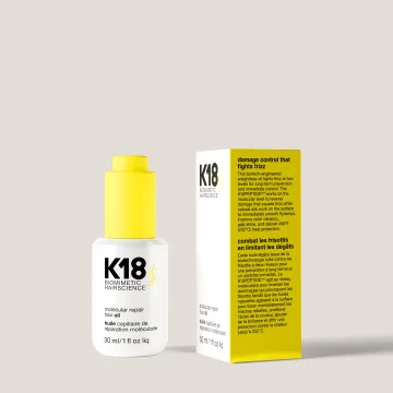 K18 Molecular Repair Hair Oil är en vårdande hårolja som motverkar frissighet, skyddar håret mot yttre påfrestningar och bidrar till att stärka och jämna ut hårstråna. Håroljan är berikad med K18Peptide, en patenterad bioaktiv peptid som hjälper till att återställa hår som skadats av värmeverktyg, UV-strålar, blekning, färgning, mekanisk påverkan, frekvent tvätt och miljöföroreningar. Den innehåller även solrosolja, squalane och hemisqualane som hjälper till att stärka hårets naturliga fuktbarriär för ökad glans och minskad frissighet, samt avokadoolja som ger ett effektivt värmeskydd upp till 230°C på torrt hår. Den vårdande formulan verkar på hårets yta och bidrar till att jämna ut fjällskiktet, mjuka upp hårstråna och kan både förebygga och behandla kluvna hårtoppar. Med en fräsch blomdoft. Passar alla hårtyper.