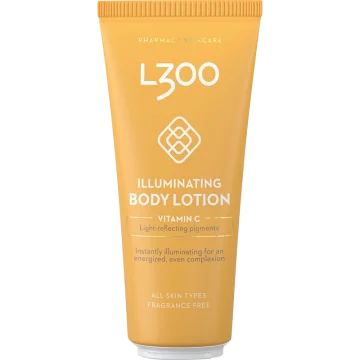 L300 Illuminating Body Lotion är en lätt kroppslotion som ger huden fukt och lyster. Berikad med vitamin C som är en kraftfull antioxidant och innehåller ljusreflekterande pigment. Ger en återfuktad hud med jämnare hudton och skimrande finish. Oparfymerad och dermatologiskt testad. Passar alla hudtyper. 200 ml.