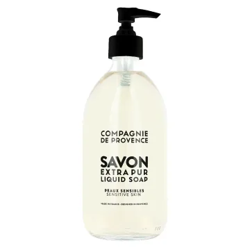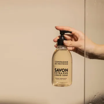 Savon Liquide de Marseille från Compagnie de Provence, är en flytande doftfri tvål anpassad för känslig hud som skyddar, reparerar och återfuktar dina händer. Handtvålen kommer i en brun pumpflaska som kan fyllas på med refill när den tar slut. Tvålen innehåller en trio av botaniska oljor: olivolja, sötmandelolja och druvkärnolja och görs enligt den traditionella metoden för tillverkning av flytande Marseille tvål. 500 ml.