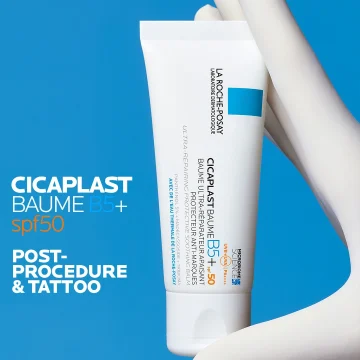La Roche-Posay Cicaplast SPF50 Baume är ett balm med solskyddsfaktor 50 som lugnar, återuppbygger och skyddar känslig och irriterad hud. Balmen hjälper till att minska synligheten av ärr och är särskilt lämplig för irriterad hud efter dermatologiska behandlingar som laser och peeling. Eller som vårdande efterbehandling av tatueringar. För vuxna och barn från 3 år.