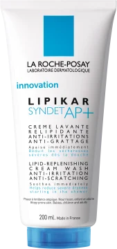 La Roche-Posay Lipikar Syndet AP+ Duschgelécreme är en lugnande duschgel speciellt utvecklad för torr och irriterad hud. Mild formula, berikad med bland annat niacinamid, sheasmör och glycerin, som återfuktar huden och hjälper till att reducera klåda och minska irritation orsakad av torr hud. Appliceras på fuktad hud och sköljs av med vatten. Passar även eksembenägen och atopisk hud. Oparfymerad och tvålfri. 200 ml.