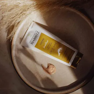 Laboratoires de Biarritz Océane Shimmer Cream är en kroppslotion som gör huden mjuk samtidigt som den ger lyster. Berikad med Alaria esculenta som återfuktar huden och kan bidra till att huden blir mer elastisk. Ekologisk kokosolja och sheasmör återfuktar och ger näring till huden medan aloe vera lugnar huden. 200 ml.