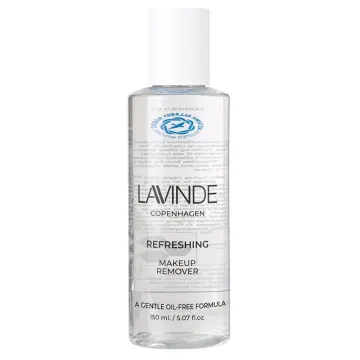 Lavinde Copenhagen REFRESHING Makeup Remover är en sminkborttagning som effektivt avlägsnar makeup från hud och ögonfransar med micellärmolekyler. Svalkande och uppfriskande formula som är berikad med aloe vera, vitamin B5 och allantoin som ger en lugnande effekt och verkar återfuktande. Hud och ögonfransar lämnas mjuka och lena efter rengöring. Certifierad av Asthma Allergy Nordic, kan användas över hela ansiktet och passar även känslig hy. Innehåller ingen olja. 150 ml.