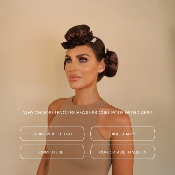 Lenoites Heatless Curling Rods with Caps är ett skonsamt och effektivt stylingverktyg som skapar volym och lockar utan behov av värme. Setet består av tre mjuka lockstavar och matchande satinmössor. Håret delas in i tre sektioner och varje sektion lindas kring lockstavarna och täcks sedan med en mössa, vilket minimerar slitage och friktion. Den silkeslena ytan i 100 % mullbärssilke bidrar till naturlig glans och minskad frissighet. Heatless Curling Rods ger både volym och definierade lockar, och de mjuka stavarna passar perfekt att använda över natten utan att störa eller kännas obekväma.