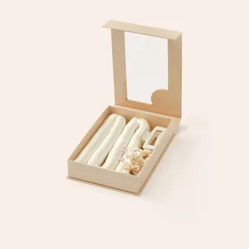 Heatless Curls band tillverkad i 100% mullbärssiden. Stoppning tillverkad i polyuretanskum. Scrunchies tillverkad i 100% satin exklusive resår.