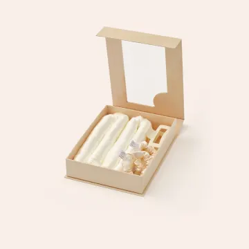 Tyg: 100% Mullbärssiden, 22-momme Storlek: 95 cm lång, 3 cm i diameter Inkluderande accessoarer: 1 hårklämma och 2 satin scrunchies.