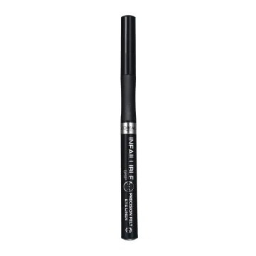 L'Oréal Paris Infaillible Grip 24H Precision Felt Eyeliner är en vattenfast eyeliner med tunn filtspets. Eyelinern är utformad för att ge ett optimalt grepp och tillsammans med den tunna spetsen som endast är 0,4 mm tjock blir det enkelt att skapa exakta linjer med hög precision och intensiv färg. Resultatet är vattenfast håller i upp till 24 timmar utan att smula eller smetas ut. 1 g.