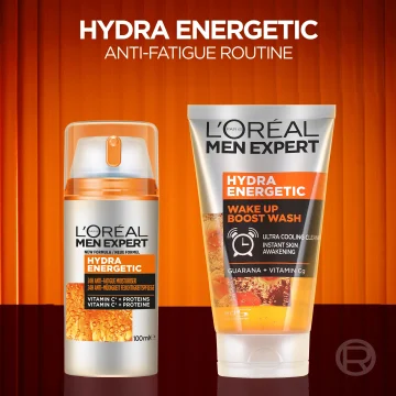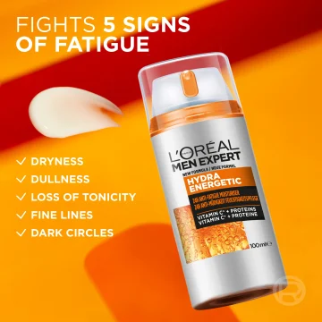 L'Oréal Paris Men Expert Hydra Energetic 24H Moisturiser Anti-Tiredness är en uppfriskande ansiktskräm speciellt framtagen för att återfukta hud som känns trött, torr och glåmig. Berikad med bland annat antioxidanterna koffein, C-vitamin och E-vitamin som vårdar huden, skyddar mot fria radikaler samt ger lyster och en jämnare hudton. Innehåller även glycerin som återfuktar huden i upp till 24 timmar. Lätt geléliknande formula som känns uppfriskande på huden och absorberas snabbt utan att kännas fet eller klibbig. Kan användas både på morgonen och på kvällen, kan även användas för att lugna huden efter rakning. 100 ml.