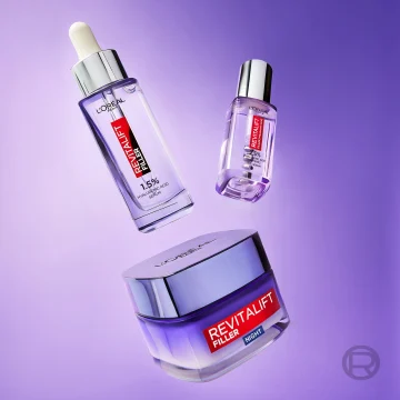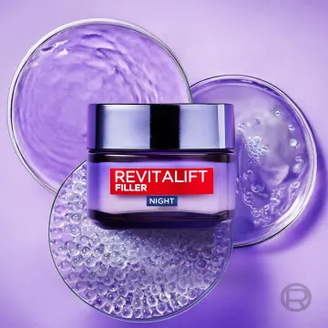 L'Oréal Paris Revitalift Filler [Hyaluronic Acid] Replumping Care Night är en anti-age nattkräm med utfyllande effekt. Ansiktskrämen innehåller hyaluronsyra samt växtextraktet galang som hjälper till att reducera rynkor och trötthetstecken. Nattkrämen hjälper även till att stärka hudens naturliga barriärfunktion samtidigt som den återfuktar. 50 ml.