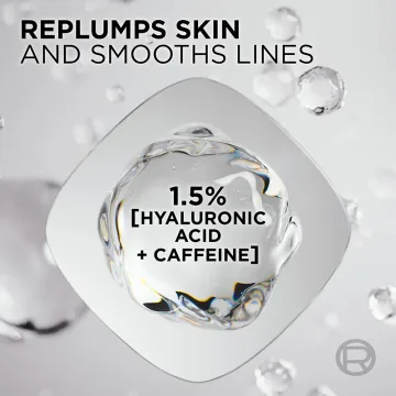 - Berikad med 1,5 % hyaluronsyra, koffeinkomplex och färgkorrigerande pigment