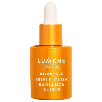 Lumene Nordic-C Triple Glow Radiance Elixir är ett lätt lystergivande serum som återfuktar huden på djupet. Berikat med antioxidanter från nordiska hjortron, C- och E-vitamin samt ferulsyra som förbättrar hudens elasticitet, reducerar fina linjer och ger huden ett fylligare och slätare utseende. Vegansk. 30 ml.