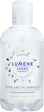 Lumene Lähde Pure Arctic Miracle 3-in-1 Micellar Cleansing Water är en ansiktstvätt som avlägsnar orenheter och make up skonsamt men effektivt. Fungerar även för att ta bort ögonsmink och läppstift. Lämnar huden återfuktad och kan bidra till att ge huden lyster. Lumene Lähde är en hudvårdsserie som erbjuder en fuktgivande formula som kan bidra till idealiskt återfuktad hud med lyster och fräschör som varar hela dagen. Alla produkter i Lumene Lähde-serien innehåller Arctic Lumenessence®-formula och rent källvatten från finska Lappland. Parabenfri. BPA-fri. Parfymfri. Vegan. Passar alla hudtyper, även känslig hy. 50 ml.