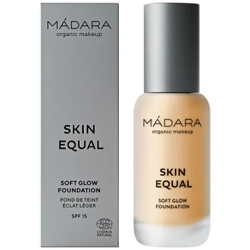 Mádara Skin Equal Foundation är en lätt och luftig mineral foundation med mjuk lyster och täckningsgrad som skapar en jämn och slät hud. Flytande Foundation som är påbyggnadsbar från medium till full täckning. Nyanser som anpassar sig till hudens naturliga ton och textur för en behaglig känsla. Innehåller zinkoxid och ger skydd mot UVA- och UVB-strålar. 30 ml.