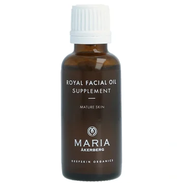 MARIA ÅKERBERG Royal Facial Oil Supplement är en lyxig ansiktsolja som piggar upp torr hy som känns trött och glåmig. Återfuktar och hjälper till att förbättra hudens elasticitet med en kombination av eteriska oljor och växtoljor som gurkörtsolja, nyponfröolja och jojobaolja. Innehåller även eterisk mandarinolja, lavendelolja, neroliolja och rosmarinolja som hjälper till att balansera huden och hjälper till att stimulera cellförnyelsen. Lätt formula som passar perfekt som serum innan dag- eller nattkräm. Kan även användas för en härlig ansiktsmassage. Flaskan har en hygienisk droppinsats som gör det enkelt att dosera oljan. 30 ml.