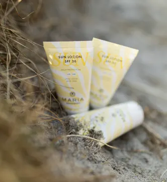 MARIA ÅKERBERG Sun Lotion SPF 30 är en vattenresistent solkräm för både ansikte och kropp. Den skyddar mot UVA- och UVB-strålar och hjälper till att förhindra solskador och förtidigt hudåldrande med hjälp av icke-nano Zinkoxid, ett fysikaliskt och mycket hudvänligt solfilter. Berikad med återfuktande jojobaolja och antioxidantrik linfröolja samt lugnande och svalkande aloe vera. Den innehåller även pongamiaolja, även känd som karanjaolja som har naturligt UV-skyddande egenskaper som förstärker solskyddets effektivitet. Oljan är rik på antioxidanter och hjälper till att skydda huden mot oxidativ stress samt stärker hudbarriären. Sun Lotion SPF 30 är berikad med naturligt karoten som lindrar torr hud och eksem. 30 ml.