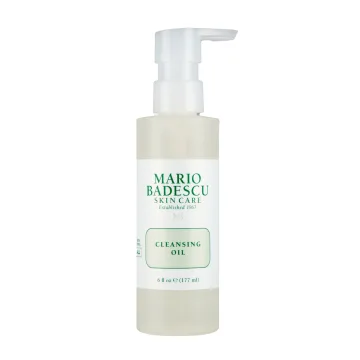 Mario Badescu Cleansing Oil är en återfuktande och skonsam rengöringsolja som tar bort vattenfast smink. Den har en lätt formula som gör huden mjuk och lämnar en fräsch känsla utan att kännas oljig. Rengöringen är berikad med näringsrik riskliolja, regenererande nattljusolja och jojobaolja samt lugnande eterisk lavendelolja. 177 ml.