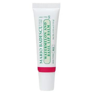 Mario Badescu Lip Balm Watermelon & Basil är ett återfuktande och vårdande läppbalsam med en mjuk konsistens. Balmet är berikat med sheasmör och en näringsrik blandning av botaniska oljor som ger långvarig återfuktande effekt. Innehåller antioxidantrika extrakt av vattenmelon och basilika. 10 g.