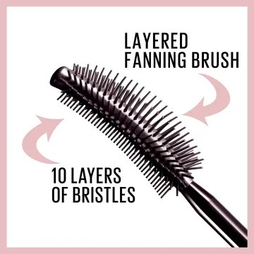 Användning: Applicera först mascaran med de mindre borsthåren för att nå och framhäva de minsta fransarna, Applicera sedan mascaran med de längre borsthåren på de längre fransarna för en solfjäderformad look. Applicera flera lager för en mer intensiv look.