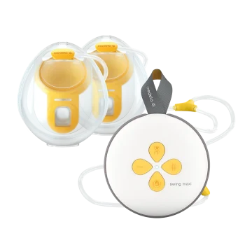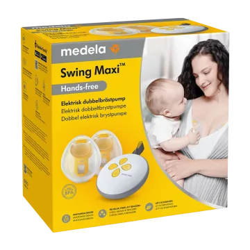 Medela Swing Maxi Hands-Free Dubbelbröstpump är en elektrisk bröstpump med smidig hands free-design som gör att du är fri att göra andra saker medan du pumpar. Själva pumpen är en separat enhet som används med en eller två uppsamlingskupor som diskret kan bäras innanför BH:n och ger en överlägsen och bekväm pumpningsupplevelse. Uppsamlingskuporna är anatomiskt utformade för att maximera mjölkutdrivning och ge god komfort. Den transparenta designen gör det enkelt att rikta in bröstvårtan och kunna se mjölkflödet. Trattar i storlek 21 mm och 24 mm medföljer. Efter användning är uppsamlingskuporna lätta att rengöra för hand eller i diskmaskin och de monteras snabbt då de endast består av tre delar. Drivs av ett uppladdningsbart batteri som laddas med USB. Kan kombineras med Meddela PersonalFit Flex Dubbelpumpset som köps separat. Bröstpumpen kan anslutas till Meddela Family App som lagrar pumpningsdata och låter dig registrera utpumpad volym för varje pumpningstillfälle. Rekommenderas för pumpning flera gånger per dag, alt. om du vill öka din mjölkproduktion eller bara vill spara tid.