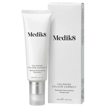 Medik8 Calmwise Colour Correct är en ansiktskräm som förser huden med en täckande effekt. Krämen hjälper till att dämpa rodnad hos känslig eller reaktiv hud. Den hjälper också till att dämpa den brännande känslan och det obehag som är kopplat till irritationer i huden. Formulan har en utjämnande effekt med gröna mineralpigment som hjälper till att neutralisera rodnad. Innehåller E-vitamin, alfa-bisabolol, bakuchiol och aloe vera. Vegansk. 50ml.