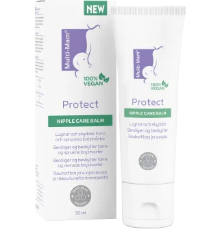 Multi-Mam Protect Nipple Care Balm är en vårdande hudkräm avsedd att använda på bröstvårtorna. Framtagen för ammande mödrar, för att skydda bröstvårtorna från att torka ut och spricka. Enkel att applicera och passar även dig med känslig hud. Behöver inte tas bort innan amning. Passar alla hudtyper. Vegan. 30 ml.
