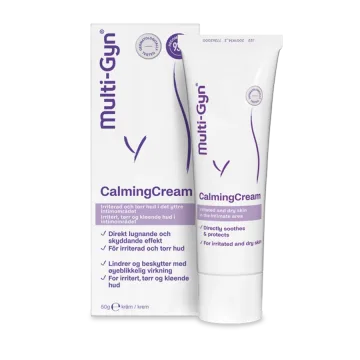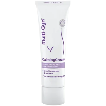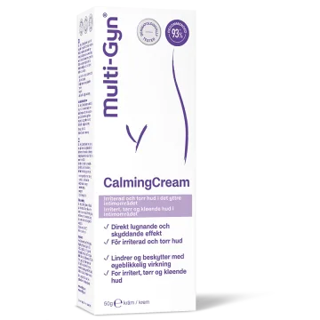 Multi-Gyn CalmingCream är en lugnande hudkräm för intimområdet, som kan bidra till att motverka irriterad, torr och kliande hud. Krämen kan också användas i kombination med produkter som används för att lindra vaginala obehag. Baserad på 2QR-komplex som stöder hudens naturliga barriärfunktion. Lämplig för daglig användning. Passar alla hudtyper. Parfymfri. 50 g.