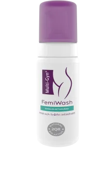 Multi-Gyn FemiWash Tvålfri Intimtvätt skyddar den naturliga floran i intimområdet. Eftersom FemiWash är mild och icke-irriterande, är den idealisk för daglig intimtvätt. Baserad på det patenterade 2QR-komplexet och innehåller naturliga ämnen samt mjölksyra. Färgen på gelen kan variera från transparent till ljust bärnstens till mörkt bärnstensfärgad. Det är en naturlig variation och har ingen påverkan gällande effekten. Parfymfri. 100 ml.
