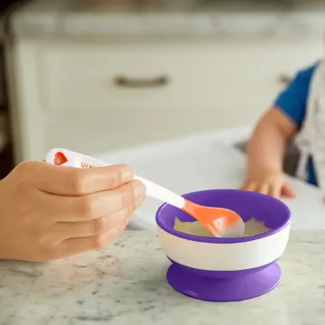 Munchkin White Hot Safety Spoons Barnsked är ett flerpack skedar med värmesensor. Värmekänslig sked som med patenterat värmesystem gör så att skeden ändrar färg och blir vit om maten är för varm. Ergonomiskt och mjukt rundat handtag som passar barns händer och är lätt att greppa. Skedarna tål maskindisk och är BPA-fri. Lämplig för barn från 4 månaders ålder. 4-pack.