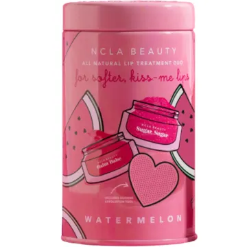 NCLA Beauty Lip Care Value Set Watermelon är ett veganskt kit för läpparna. Setet innehåller Sugar Sugar läppskrubb som skonsamt exfolierar och återfuktar, samt Balm Babe läppbalsam som hjälper till att lugna och återfukta läpparna. Varje set kommer med en läppskrubber i silikon för att underlätta appliceringen av läppskrubben. Med doft av vattenmelon.