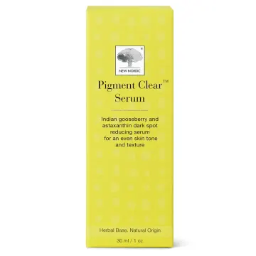New Nordic Pigment Clear Serum är ett örtbaserat och blekande serum som hjälper till att korrigera pigmentfläckar för en jämnare hudton. Innehåller exklusiva växtextrakt som indiskt krusbär, mullbärsblad och astaxantin. Veganskt och fri från silikoner och sulfater. Tillverkad i Sverige och är cruelty-free. 30 ml.