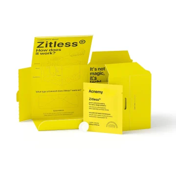 Niche Beauty Lab Acnemy Zitless är ett plaster med mikronålar som behandlar finnar i tidigt skede. Plåstret är försett med 24 mikronålar fyllda med en blandning av ingredienser som retinol, salicylsyra, hyaluronsyra, niacinamid och oligopeptid-76. Efter att plåstret applicerats på huden, tränger mikropilarna igenom de första lagren av huden och löses upp. Låt plåstret verka i minst två timmar. 5 x 0,65 mg.