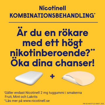 Nicotinell tuggummi hjälper dig att sluta röka eller trappa ner med rökning och lindrar 5 abstinensbesvär: rökbegär, frustration, irritation, oro, rastlöshet • God fruktsmak • Innehåller 2 mg nikotin • Sockerfritt • Kan kombineras med Nicotinell depotplåster Läkemedel för rökavvänjning och rökreduktion. Innehåller nikotin. Kräver viljestyrka. Nicotinells sortiment innehåller depotplåster, medicinskt tuggummi och sugtablett.