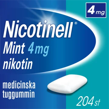 Nicotinell tuggummi hjälper dig att sluta röka eller trappa ner med rökning och lindrar 5 abstinensbesvär: rökbegär, frustration, irritation, oro, rastlöshet • Mintsmak • Innehåller 4 mg nikotin • Sockerfritt Läkemedel för rökavvänjning och rökreduktion. Innehåller nikotin. Kräver viljestyrka. Nicotinells sortiment innehåller depotplåster, medicinskt tuggummi och sugtablett.