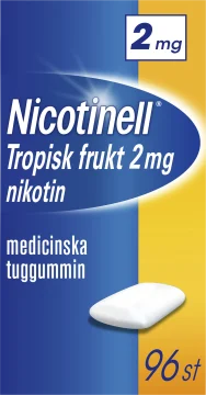 - Innehåller nikotin som verkar genom att lindra nikotinbegär och abstinensbesvär. Tuggummi med tropisk fruktsmak